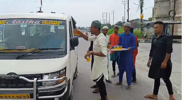 Rajganj, 29th July: On the auspicious occasion of Muharram, a voluntary organization in Fulbari extended a compassionate gesture by distributing Sherbet among the passers-by. This heartwarming initiative aimed to offer refreshment and relief to all those travelling on the busy Siliguri Jalpaiguri National Highway No. 31, particularly at Murder More in Fulbari.