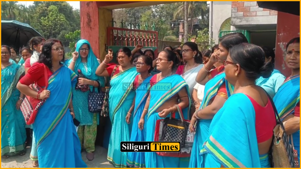Kharibari, 26th March: Anganwadi workers have alleged non-payment of egg and vegetable bills since December. In response, the West Bengal Anganwadi Workers and Assistant Welfare Association staged a protest outside the Kharibari CDPO office on Wednesday, demanding clearance of dues.