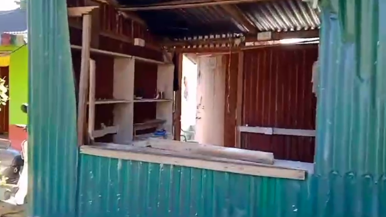 On Saturday night, a wild elephant invaded the Shramik Mohalla of Mechpara Tea Estate. Initially, it attacked four houses and a shop along the paved road of the tea estate. Later, it proceeded to damage three more houses down the road.