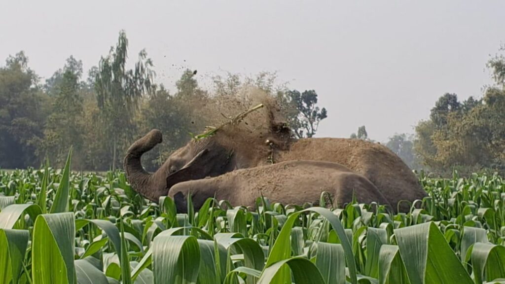 Rajganj, 20th February: In a recent development, two wild tuskers crossed the Indo-Bangladesh border on the other side of Rajganj block and entered Bangladesh. Currently, the wild elephants have taken shelter in a corn field located in the Dakshin Kashimganj area under Tetulia Upa Zilla of Bangladesh.