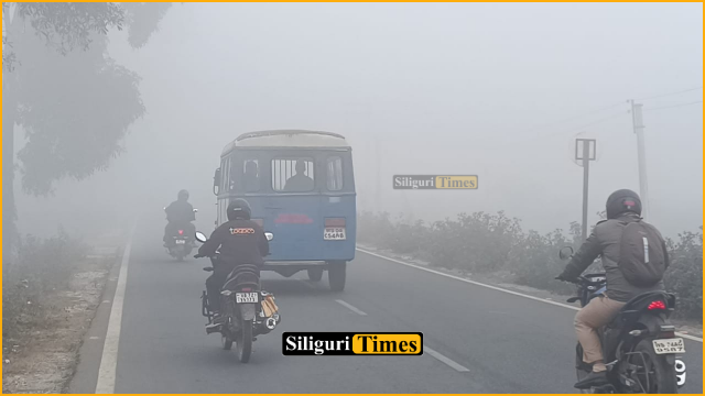 Thick fog was reported in Siliguri and nearby areas including Fulbari and Ambari, significantly reducing visibility. In several locations, visibility dropped to just a few metres, making it difficult to see the road ahead.