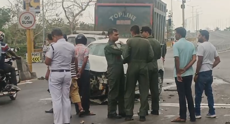Siliguri, 07th May: A horrifying accident near the Bagdogra Airport left a woman Air Force official injured. The collision occurred between a government bus and a four-wheeler on the National Highway (NH) 31.