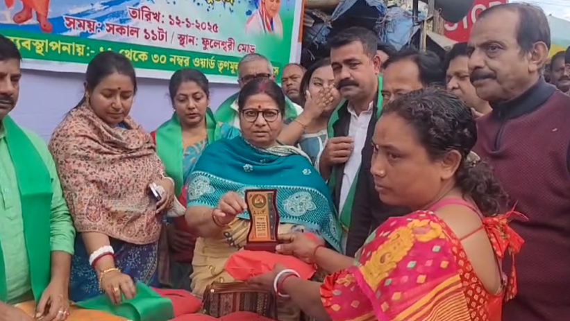 Siliguri, 12th January: On the occasion of Swami Vivekananda’s 163rd birth anniversary, the Siliguri Trinamool Youth Congress honoured 20 women e-rickshaw drivers with winter clothing and mementos. The recognition was given to empower these women and encourage their self-reliance.