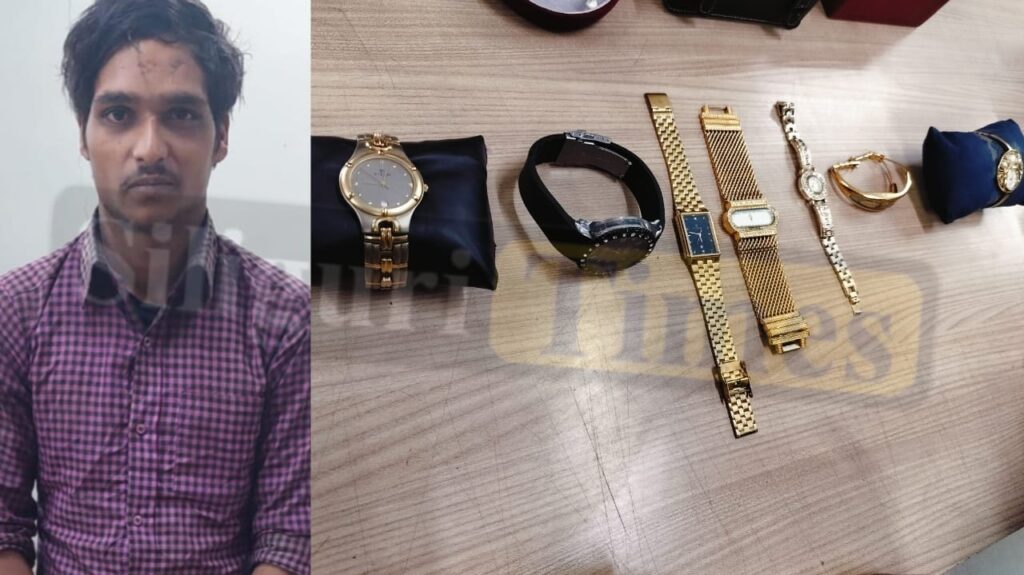 Siliguri, 08th February: In a recent development, a young man accused of stealing expensive watches and cash from a residence has been arrested by the cops of Siliguri police station, before selling the stolen watches. The arrested accused has been identified as Saurabh Das, a resident of Rangapani area.