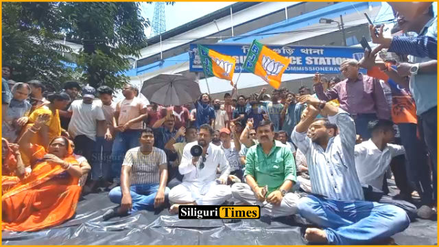 Siliguri, 09th July: BJP staged a protest at Siliguri police station after a youth was allegedly forcefully taken from Hawkers’ Corner and assaulted. The protest included a road blockade that lasted for several hours.